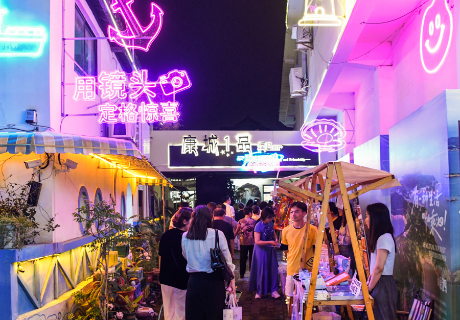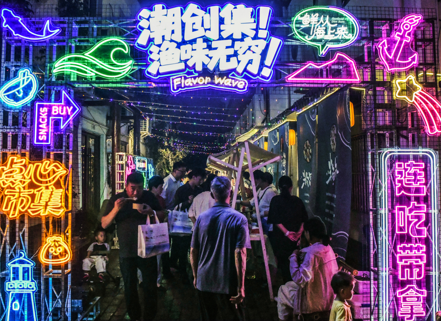 市民在夜逛文化创意集市 摄影记者 陶磊